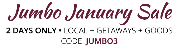Use Code JUMBO3 on Local, Goods, and Getaways deals.